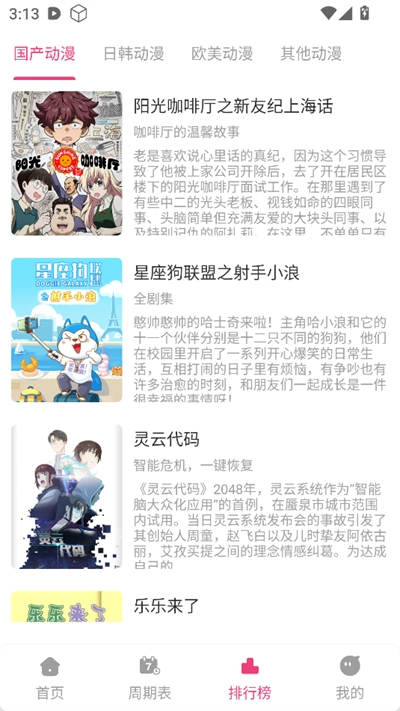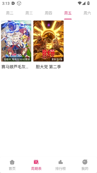 2. 点击进入周期表页面,该页面中的排期表会展示每日动漫的更新情况。