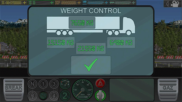 4、单击游戏中的左右按钮以掌握卡车的移动、你自己的卡车也可以换档,您可以自由解锁不同的卡车并在不同的游戏地图中驾驶;