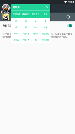1、打开鸡乐盒软件,开启悬浮窗权限后,它便会缩小并出现在屏幕上,具体情形如图所示。