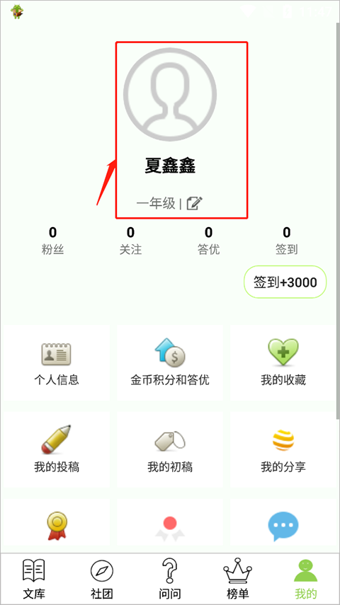 3、这个时候就可以回到“文库”页面,选择“作文投稿”。