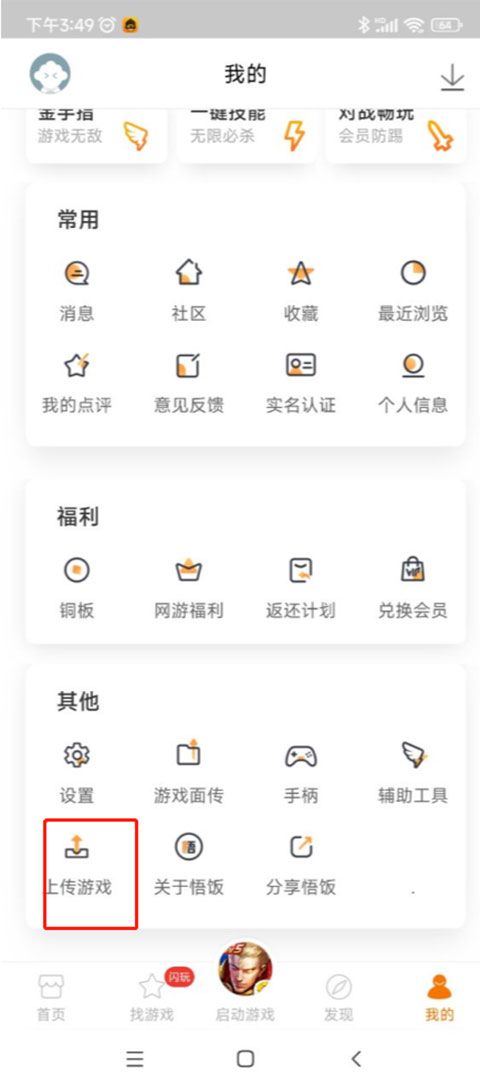 悟饭游戏厅怎么上传游戏