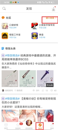 1. 打开软件,在发现栏目里能看到社区,接着点击进入社区。