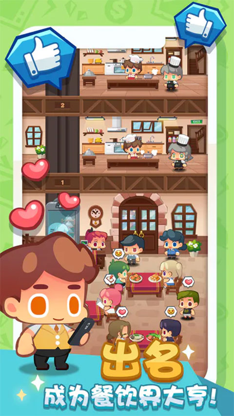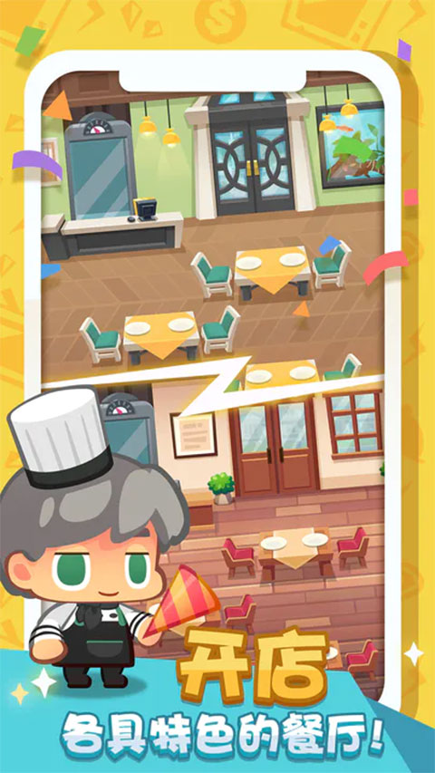 1、有着不同风格的餐厅,需要你不断升级去解锁餐厅。