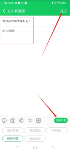 3、将帖子的标题、内容全部编辑完毕后,再点击右下方选择帖子的类型,全部完毕后,最后点击右上方的“提交”,等待一段时间的审核,审核通过后就成功发帖了。