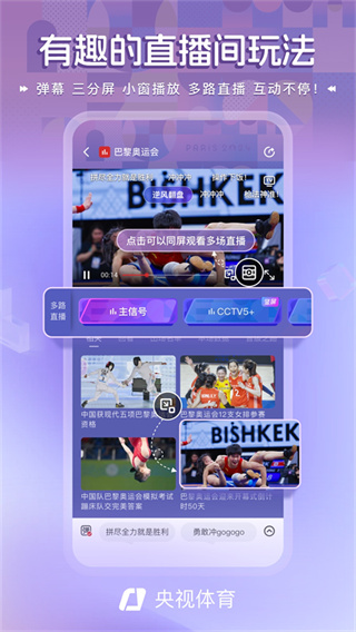 央视体育直播app有着趣味十足的直播间玩法,它支持多屏分看功能,确保你不会错过任何一场精彩赛事直播。同时,在直播间里,你能够畅快地发弹幕、刷礼物,与众多观众一同展开趣味互动。