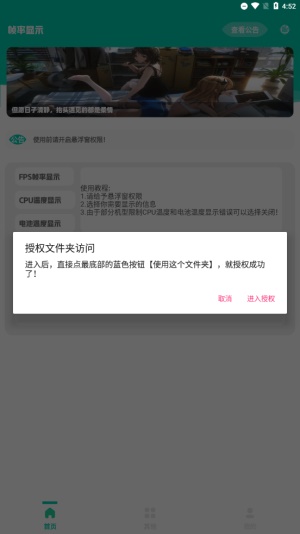 1. 下载并安装帧率显示器软件,随后赋予App悬浮框权限。