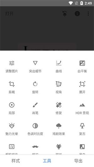 RAW 显影功能——能够打开 RAW DNG 文件并进行精细调整;可将文件以无损方式保存,或者导出为 JPG 格式。