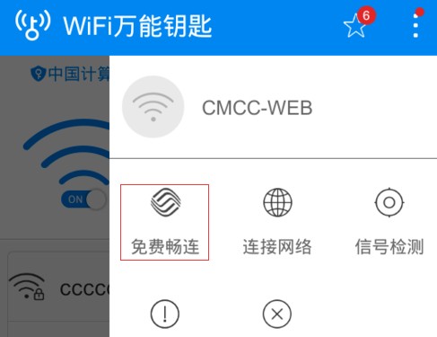 3、复制这个激活码,回到wifi万能钥匙,选择移动的wlan cmcc-web,选择免费畅连。