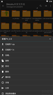 长按文件夹调出操作菜单 进行压缩、复制、剪切删除等操作。