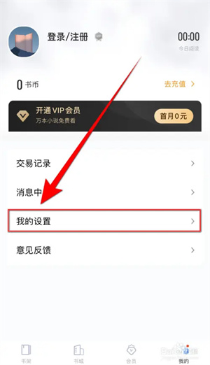 手机打开【黑岩小说】App,黑岩小说主界面点下方的【我的】打开个人信息界面
