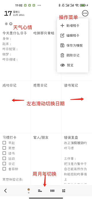 6、通过模板功能保存适合自己的格子问题,帮助更快速地回顾与反思,聚焦写作与记录。