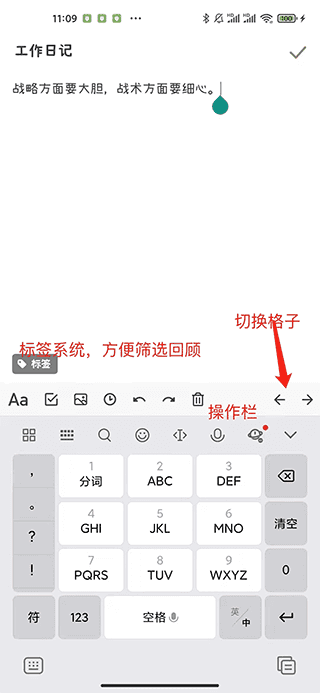 2、提供模板功能、问题库、习惯打卡、代办提醒、标签系统、心情树洞等丰富的功能;