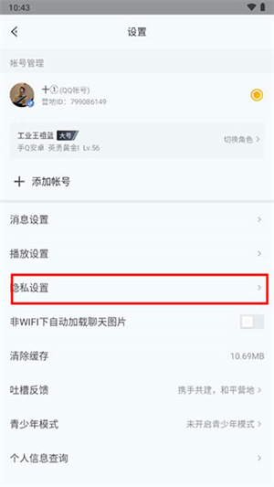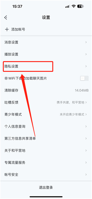 3、然后在里面找到“隐私设置”。