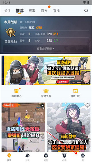 1、首先我们打开和平营地登录游戏账号,然后在主页点击右下角的“我”。