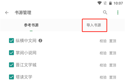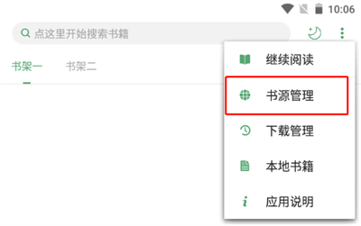 2、点击菜单中的“书源管理”功能,管理自己的书源;
