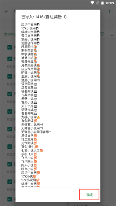6、最后检查到对应的书源文件后,点击“确定”即可导入第三方书源网址内保存的所有书源。