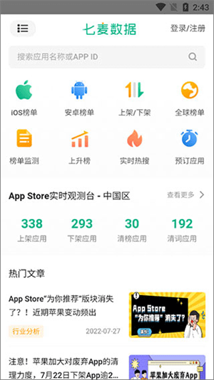 每日上线/更新/删除应用数量、榜单更新时间、审核时长、关键词搜索结果变化率,多维度AppStore数据应有尽有。