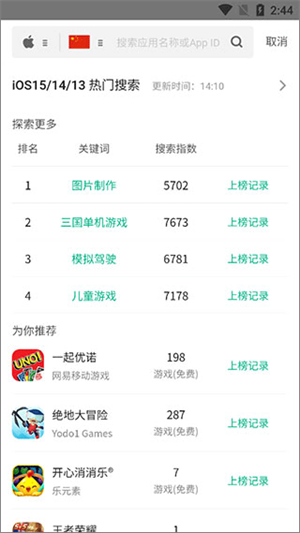 提供iOS&Android双平台榜单实时查询,最新排名、变化趋势、竞品榜单动态一网打尽,且数据更准确、更全面。