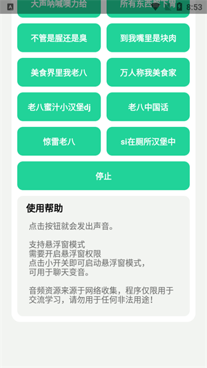 八音盒老八版版,堪称一款趣味十足且极为搞笑的手机变声神器。该软件精心为用户准备了各式各样不同类型的声音,大家能够从中挑选出自己心仪的声音,轻松实现变声操作。不仅如此,借助八音盒老八版版,用户还能获取到老八的经典话语,这样在聊天时就能直接拿来使用啦。