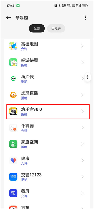 2、点击该选项,便会进入手机系统的悬浮窗设置页面,在其中找到鸡月盒软件并进入。