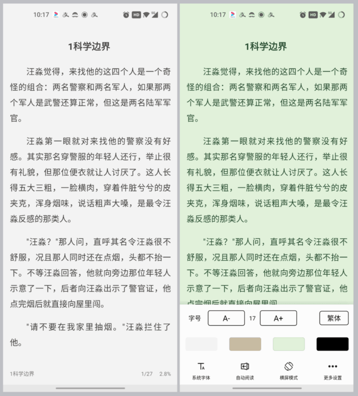 默认的排版很舒服,行间距、字体大小、背景颜色看起来都不错,如果不喜欢点击右下角设置自行调整。
