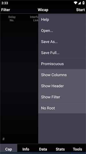 2. 轻点“Info”,即可实时监测网络连接状态,同时查看数据包的发送与接收情况。