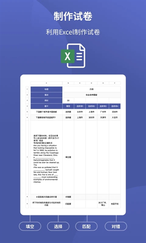 了制作试卷的功能,无需电脑就能动手编制题目。手机里制作的试卷还可以随时导出成Excel文件,以便能在电脑上继续更改。