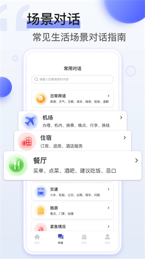 需要与外国人进行1:1对话时,可以用对方的语言同时进行对话