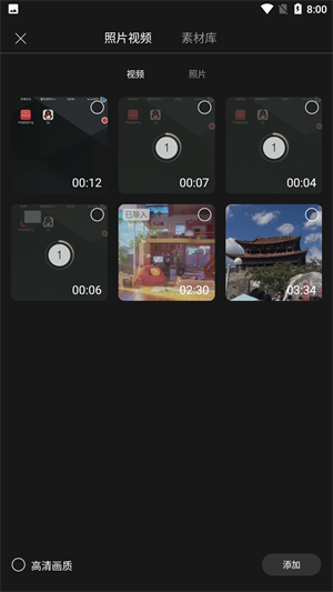 (5)一键成片功能,支持一键导入,智能成片;为用户智能推荐多种模板,满足用户不同的视频风格需求,让视频画面即刻拥有大片质感;用户导入素材之后,可以进行裁剪、替换素材等二次编辑。
