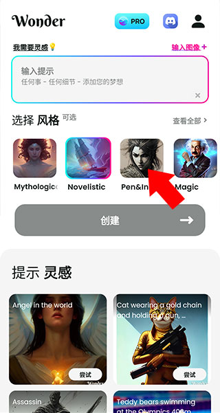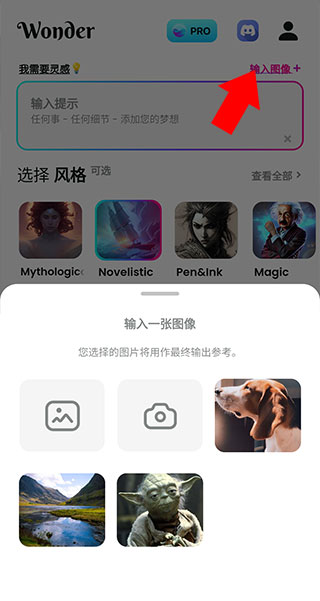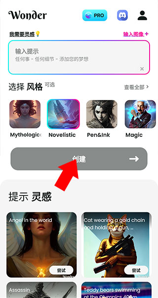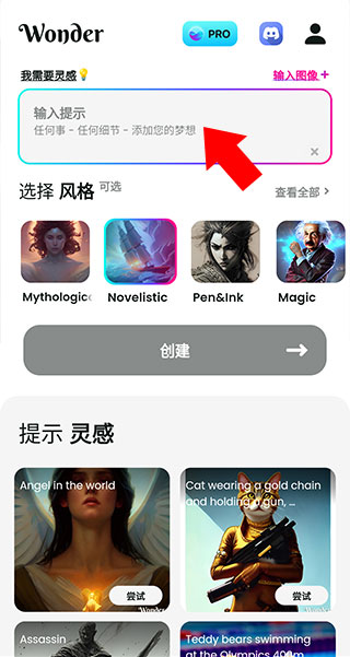 3、使用人工智能的力量创造美丽的艺术品!输入提示,选择一种艺术风格,观看Wonder在几秒钟内将您的想法转化为人工智能绘画。
