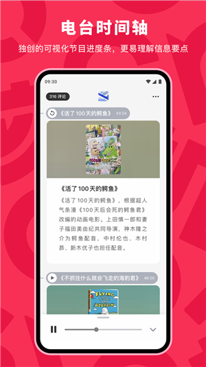 为电台节目独创的可视化节目进度条,更易理解信息要点,边听边看,风光无限;