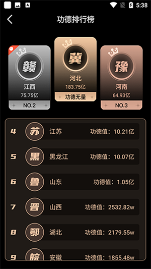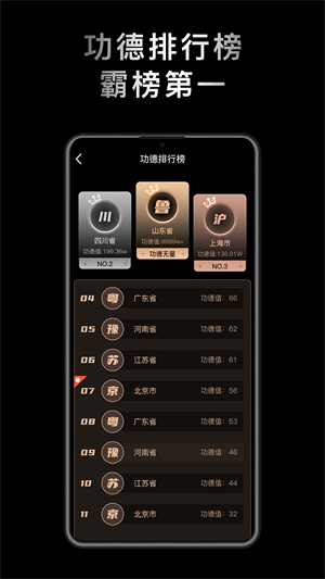 2、点击功德排行榜,即可查看全国省市的功德排行。