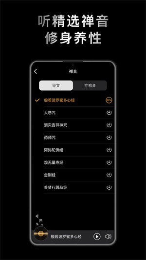 3、【音乐可选择】免费更换背景音乐,共有16种音乐可供选择,还可听佛经