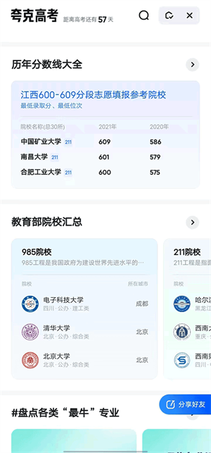 1、打开夸克志愿填报app软件,在搜索框中搜索【高考】即可查看到高考志愿填报系统;