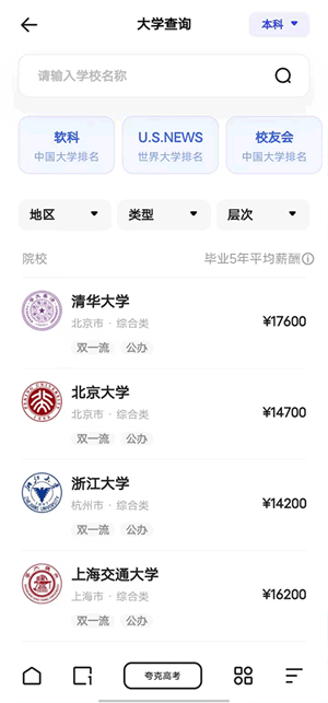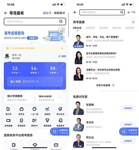 能够查询各省1000余所高校的招生预测分数与排名线。通过省份、学校类型等关键词进行筛选过滤,考生可随时依据自身目标定位院校,使考生能直观看到自己的分数及排名。