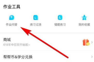 1、打开作业帮APP,在界面中找到作业问答,具体位置如以下图片里箭头所指示的地方。