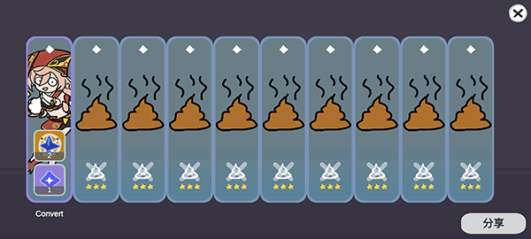 2、作为同人二创手游,游戏画风十分鬼畜有趣,抽卡后点击右下角还可生成图片分享给好友