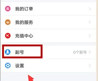 3、点击设置中的【副号】,如下图所示。
