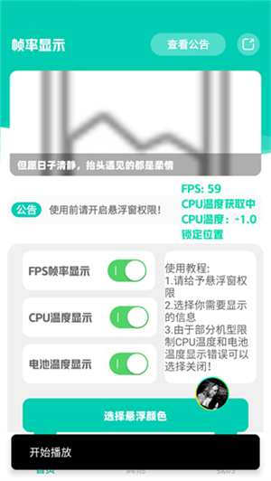 5、能够直接通过悬浮窗形式显示手机屏幕的帧率,以及CPU温度和硬件信息等等,可以显示显卡相关信息,包括显卡占用和显卡温度,数据非常准确。
