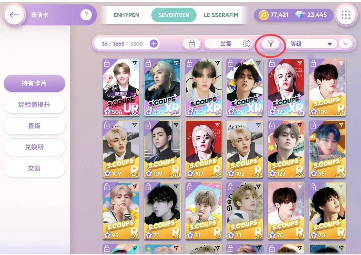 使用多余的卡牌升级时,不同成员和专辑的经验值有所不同: