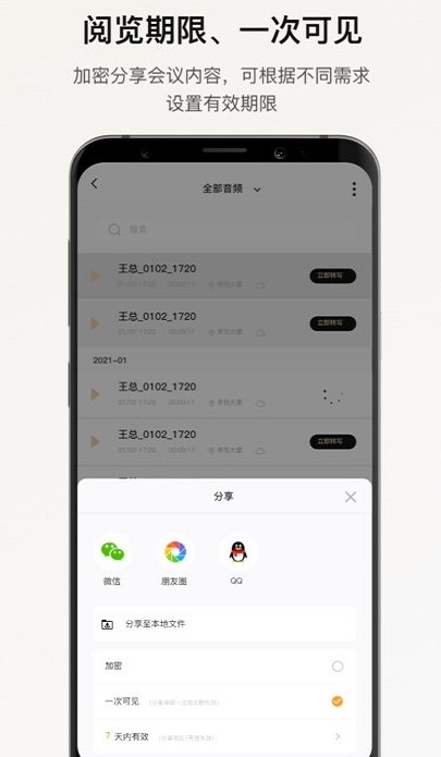 4. 音频转换成文稿后,可快速导出,既能保存到本地文件,也能分享到社交平台上。