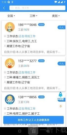 鲁班用工是一个招聘平台,能为各行各业的流动工人提供各类高质量工作。平台上的每一个人,都能助力用户获取各种优质工作资源,还能协助用户在平台上开展更多事务,比如寻觅高质量工作资源。不仅如此,平台里的每个人都可以帮用户找到心仪的工作。