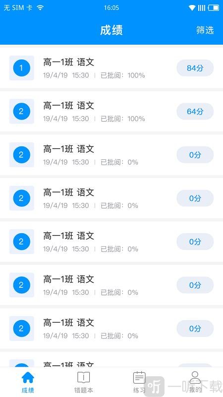 6. 智能统计成绩,每道练习题都会为学生进行智能打分。