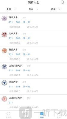 2. 专业汇总:可进行专业搜索,并查询学校的详尽信息。