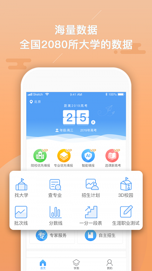 2. 涵盖全国高校的年度分数、招生计划、学校详细信息,还有校园环境、图片及视频介绍、咨询电话等内容。