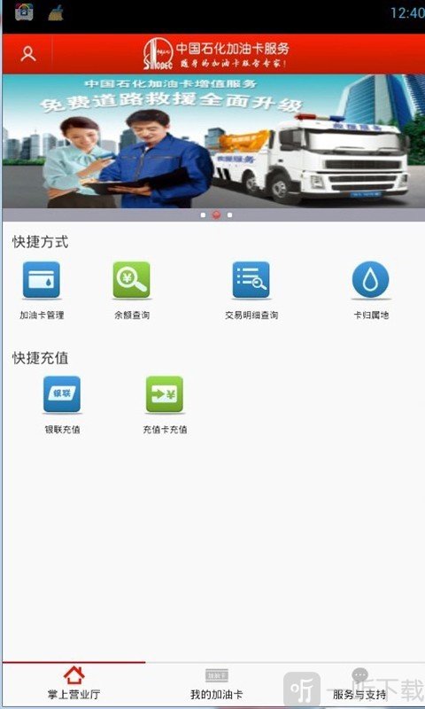 中国石化加油卡掌上营业厅,极大地方便了中石化顾客进行充值。只需通过手机,就能轻松为自己的加油卡充值,卡内余额也能清晰直观地呈现,界面简洁清爽。不仅使用操作极为简单,功能还十分强大,用户足不出户即可完成充值服务。