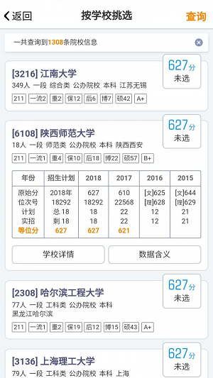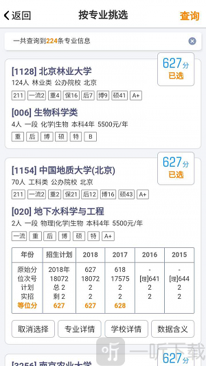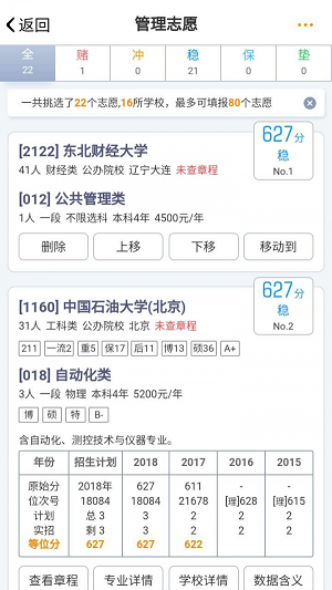 2.在此处,您能够便捷地查看历年来各类学校及专业的录取分数。