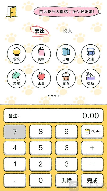 1.喵喵记账的主页界面,您可以通过下拉查看今天的收入和支出的详细信息;