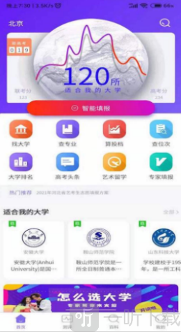 1. 高校填报优先:依据近5年高校录取分数,并借助智能推荐算法,推荐录取率较高的高校。
