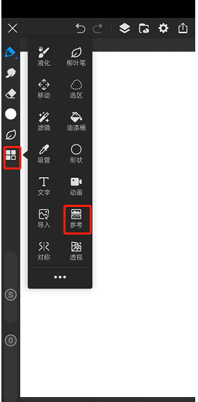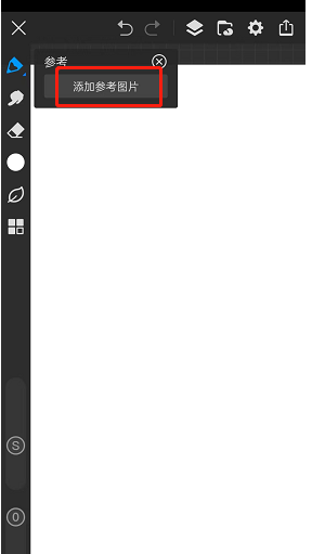 3、点击之后,在画布的左上角会呈现出一个名为【参考】的小界面。